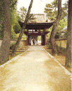 四番札所への遍路道は山の中の細い道だが、近年序々に整備されつつある。寺に着いた遍路の目に飛び込んでくるのは、山を背にした朱色の鐘桜門。山に囲まれた落ち着いた雰囲気の中、木々の緑に映える朱色のコントラストが美しい。